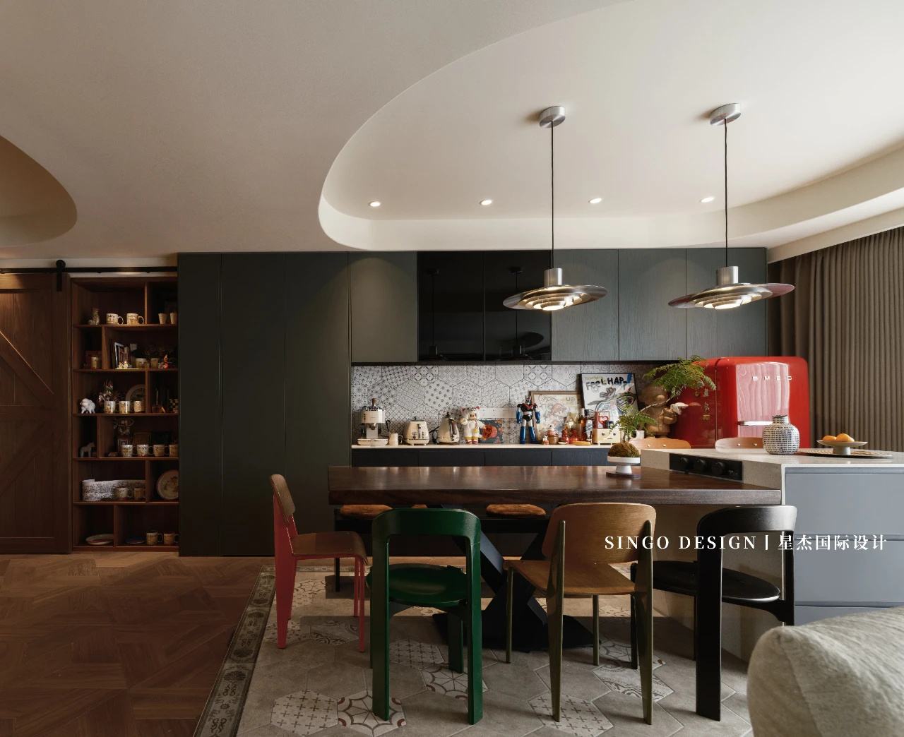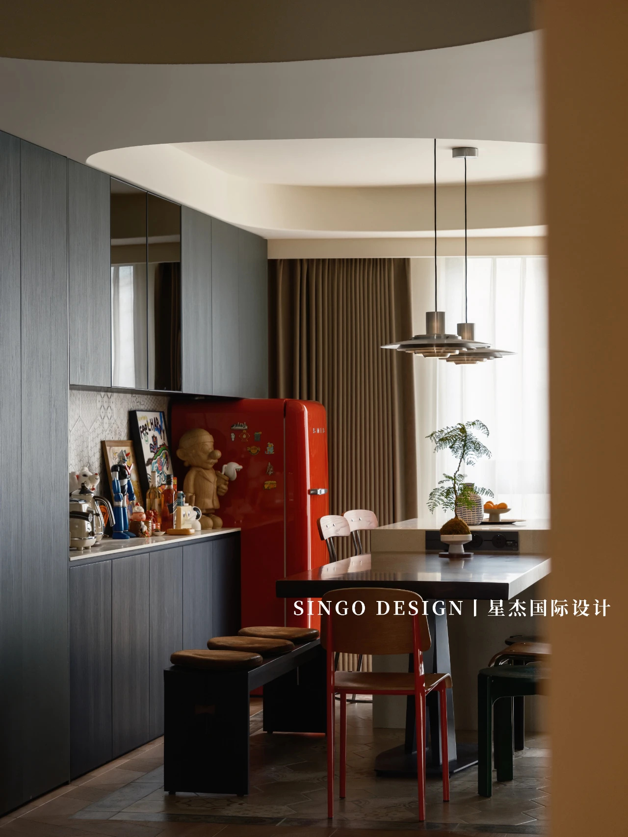 ✅谷仓门后藏收纳,超长中岛吧台紧连咖啡角、手办台,私享、社交一体两用。
