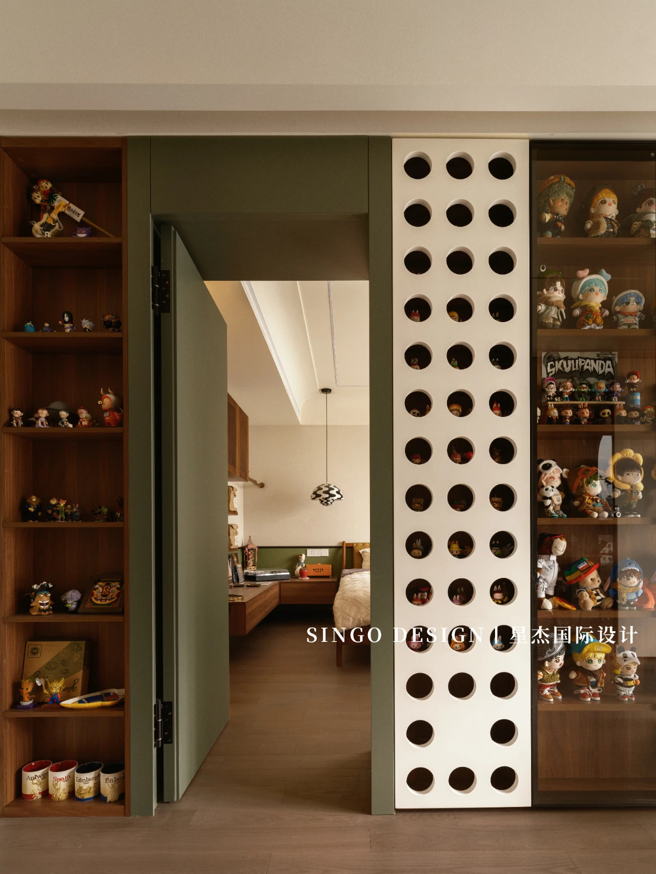 推开门,Labubu、小野、Molly排排站……喵星人沿滑板鞋架一一巡视。这个90 后文艺夫妻的「私藏潮玩博物馆」让热爱与萌宠共居。